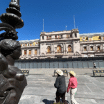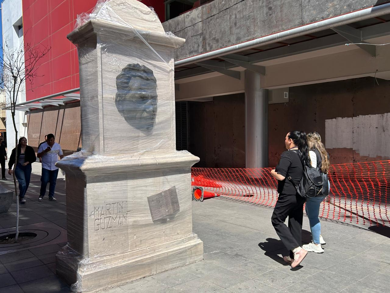 Protegen estatuas del Centro de Chihuahua con plástico