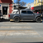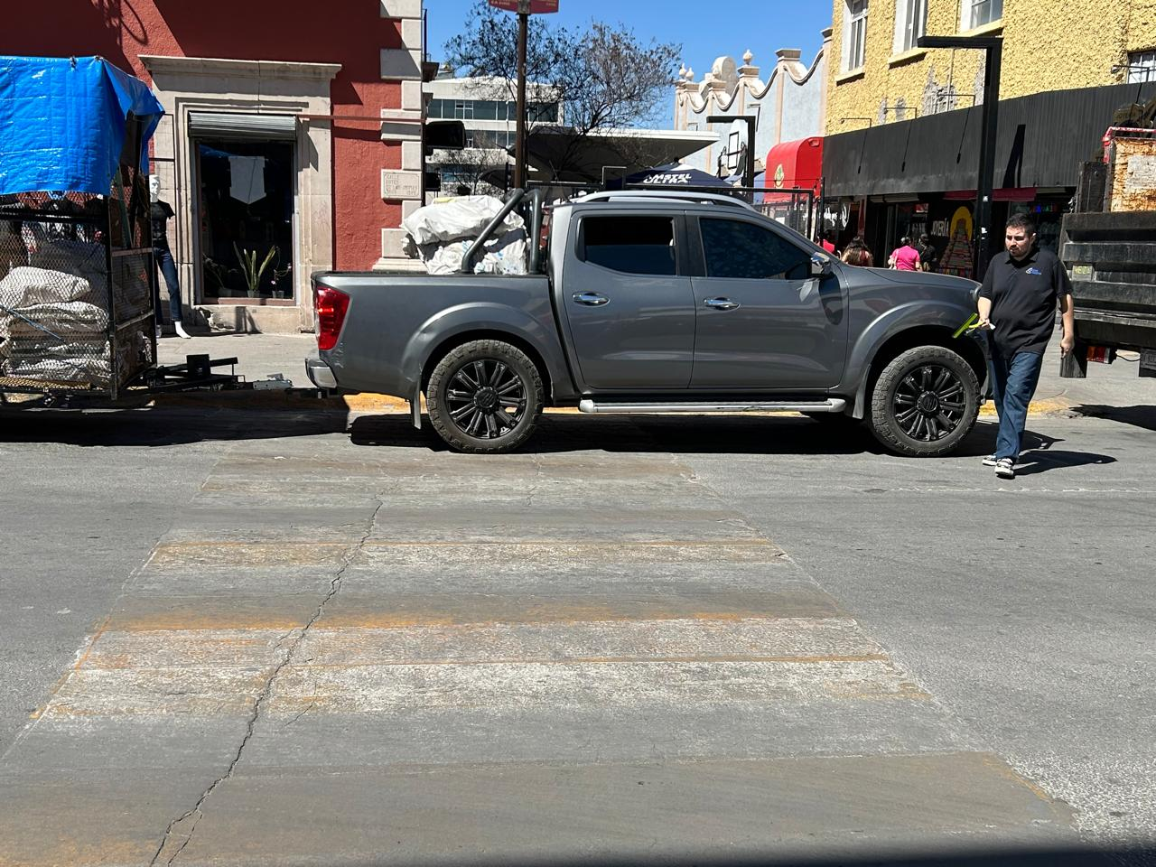 Camioneta con remolque invade paso peatonal en pleno