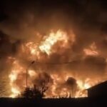 Voraz incendio consume fábrica de tarimas y provoca