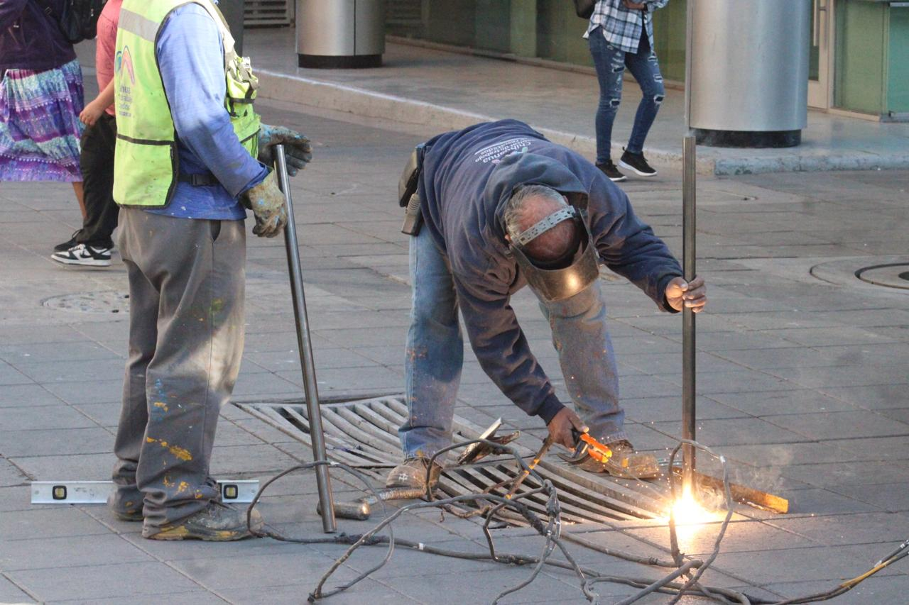 Reparan rejillas del drenaje pluvial en el Centro