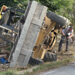 Maniobra fallida deja retroexcavadora volcada en calles de