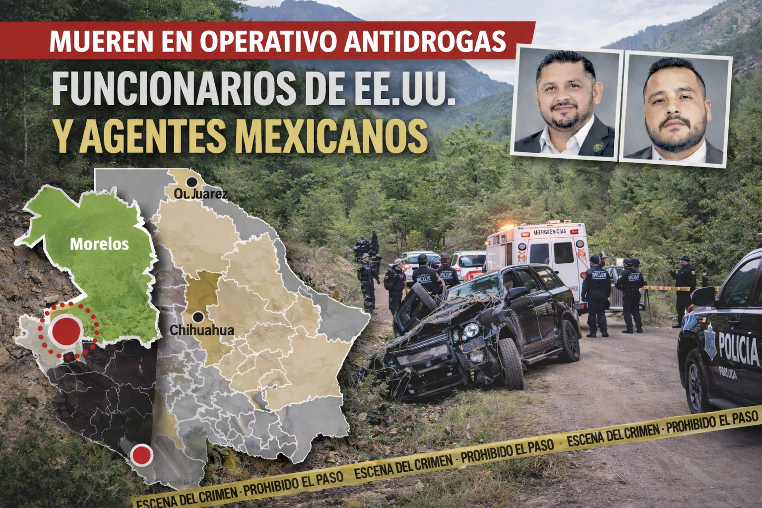 Una operación contra laboratorios clandestinos en la zona serrana de Chihuahua terminó en tragedia luego de que cuatro integrantes de un equipo binacional perdieran la vida en un accidente carretero, entre ellos dos funcionarios de la Embajada de Estados Unidos en México y dos agentes mexicanos, en hechos registrados en [...]
