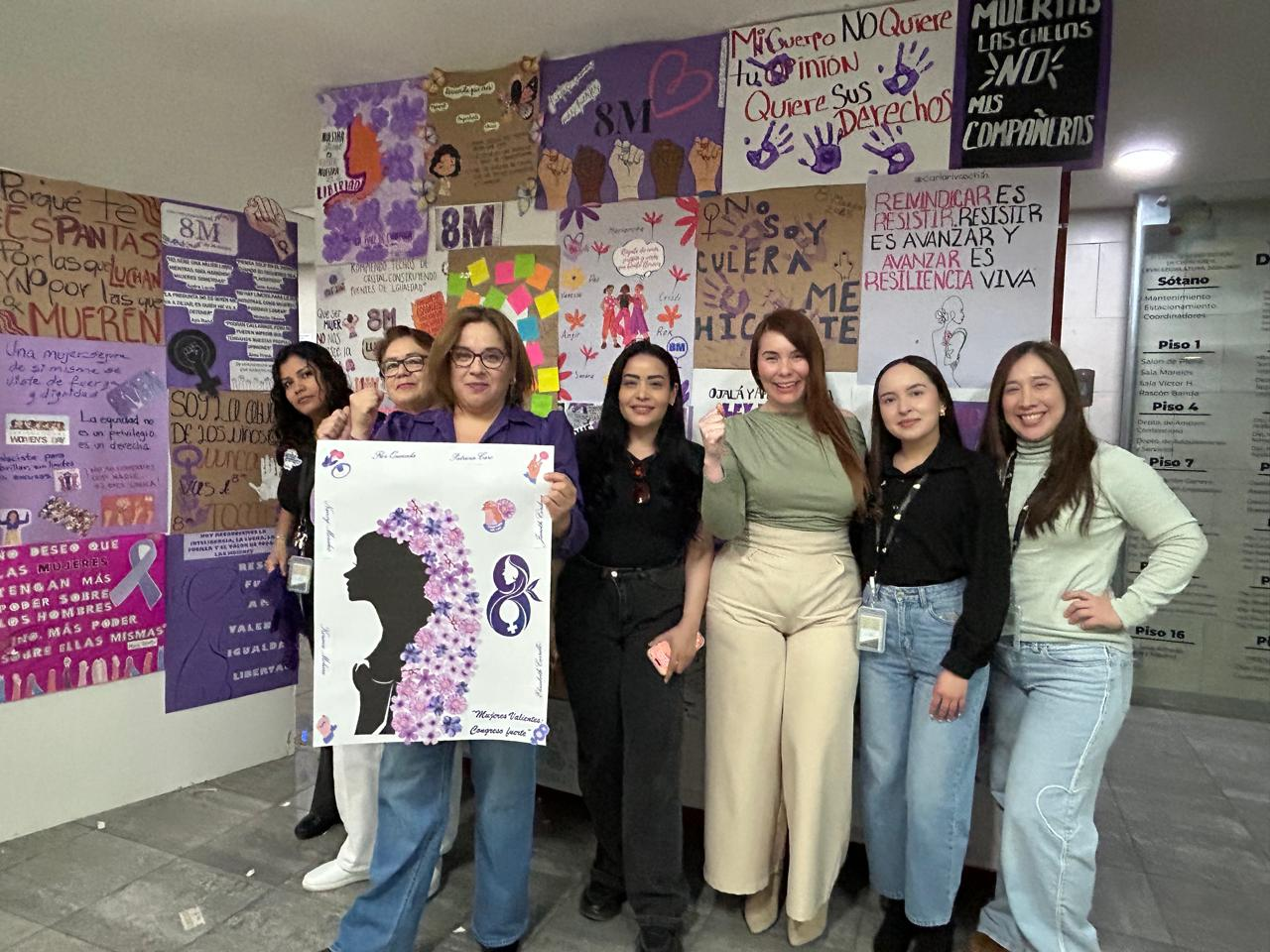 Empleadas del Congreso de Chihuahua elaboran pancartas por el 8M para visibilizar demandas de las mujeres