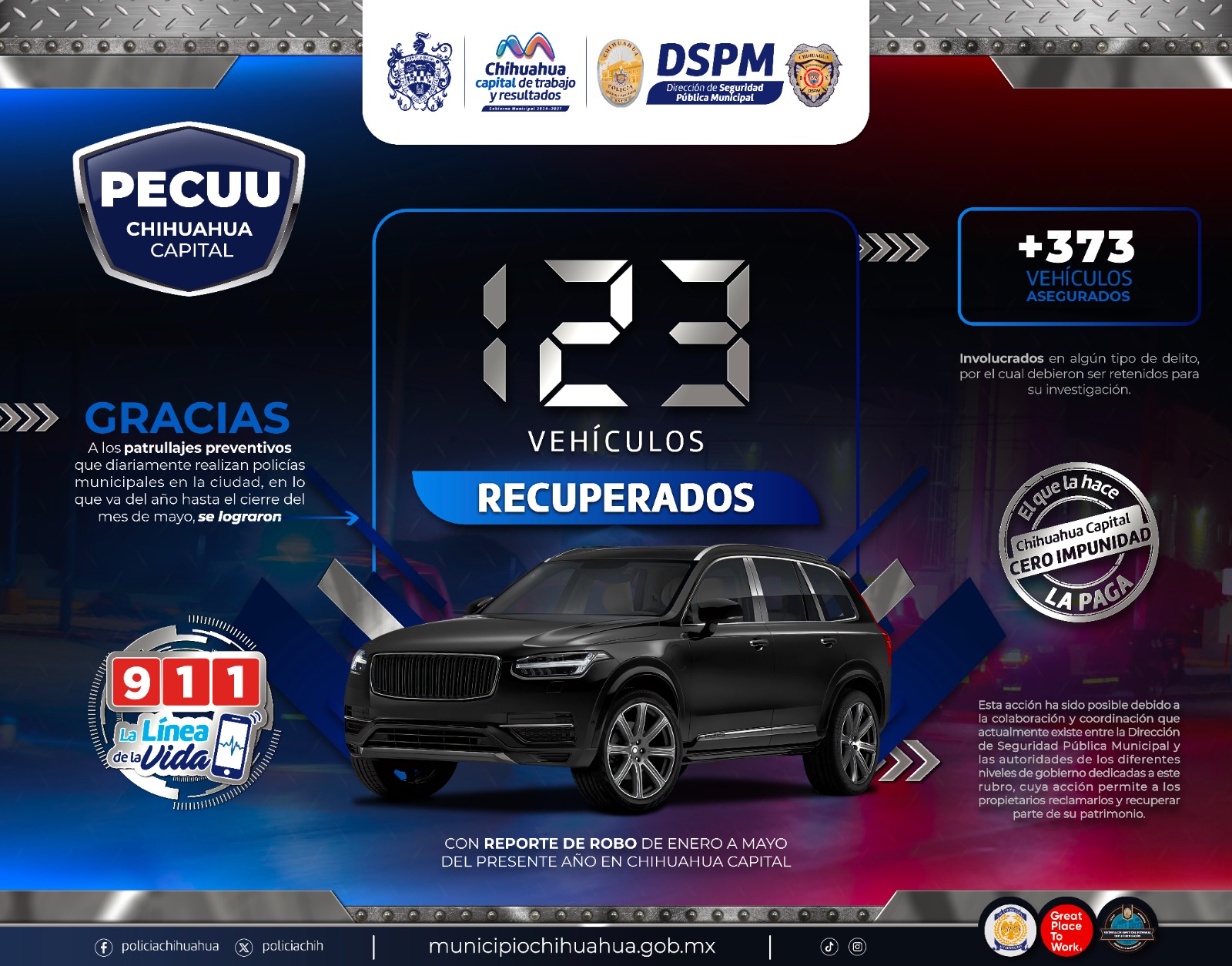 – _Gracias a los patrullajes preventivos, estas unidades podrán ser devueltas a sus propietarios_ _*H. Ciudad de Chihuahua, Chih., a 4 de junio de 2025.-*_ En lo que va del presente año, un total de 123 automóviles de 155 que contaban con reporte de robo fueron recuperados gracias al trabajo [...]