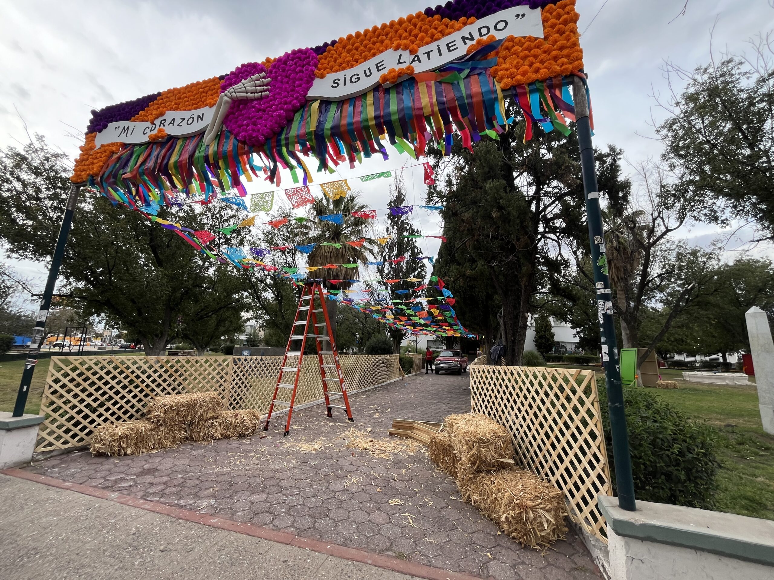Adornan entrada al centro Cultural Los Laureles por Día de Muertos
