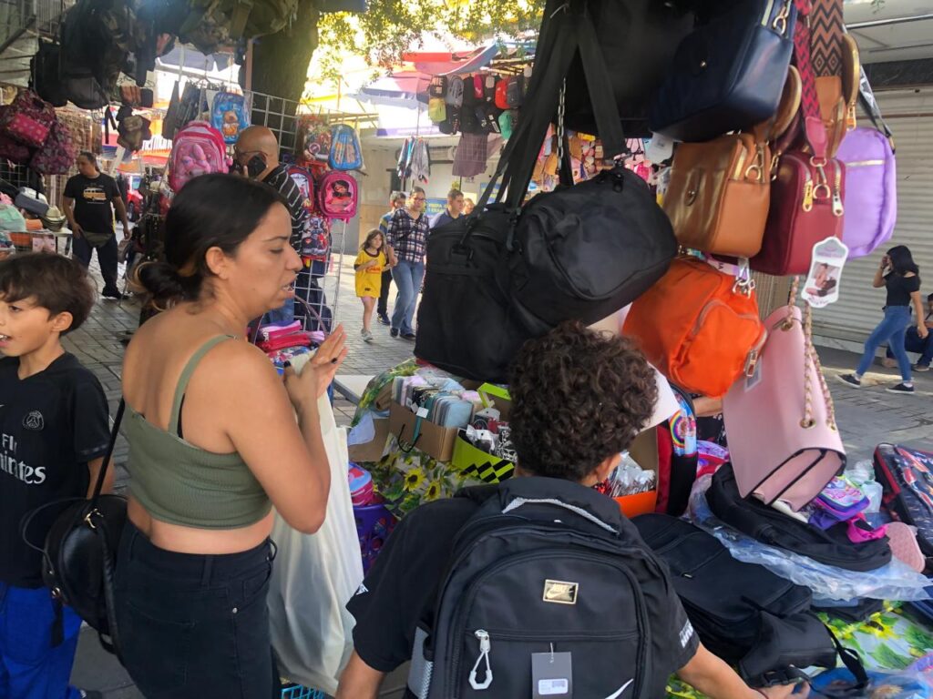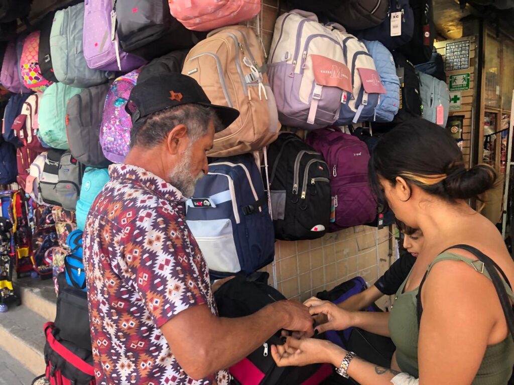 La actividad comercial en el centro refleja el movimiento típico de esta temporada, donde padres de familia buscan opciones accesibles para equipar a sus hijos antes del arranque escolar. La variedad de productos y precios permite a las familias encontrar alternativas según sus necesidades.