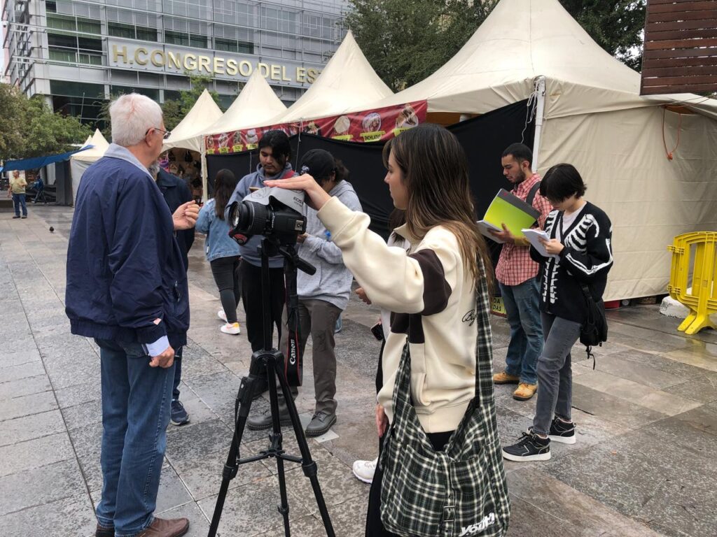 El grupo está conformado por aproximadamente diez estudiantes, quienes recorren el área para observar detalles arquitectónicos, materiales y proporciones del edificio. La actividad forma parte de una práctica de campo que busca fortalecer el vínculo entre teoría y entorno urbano.