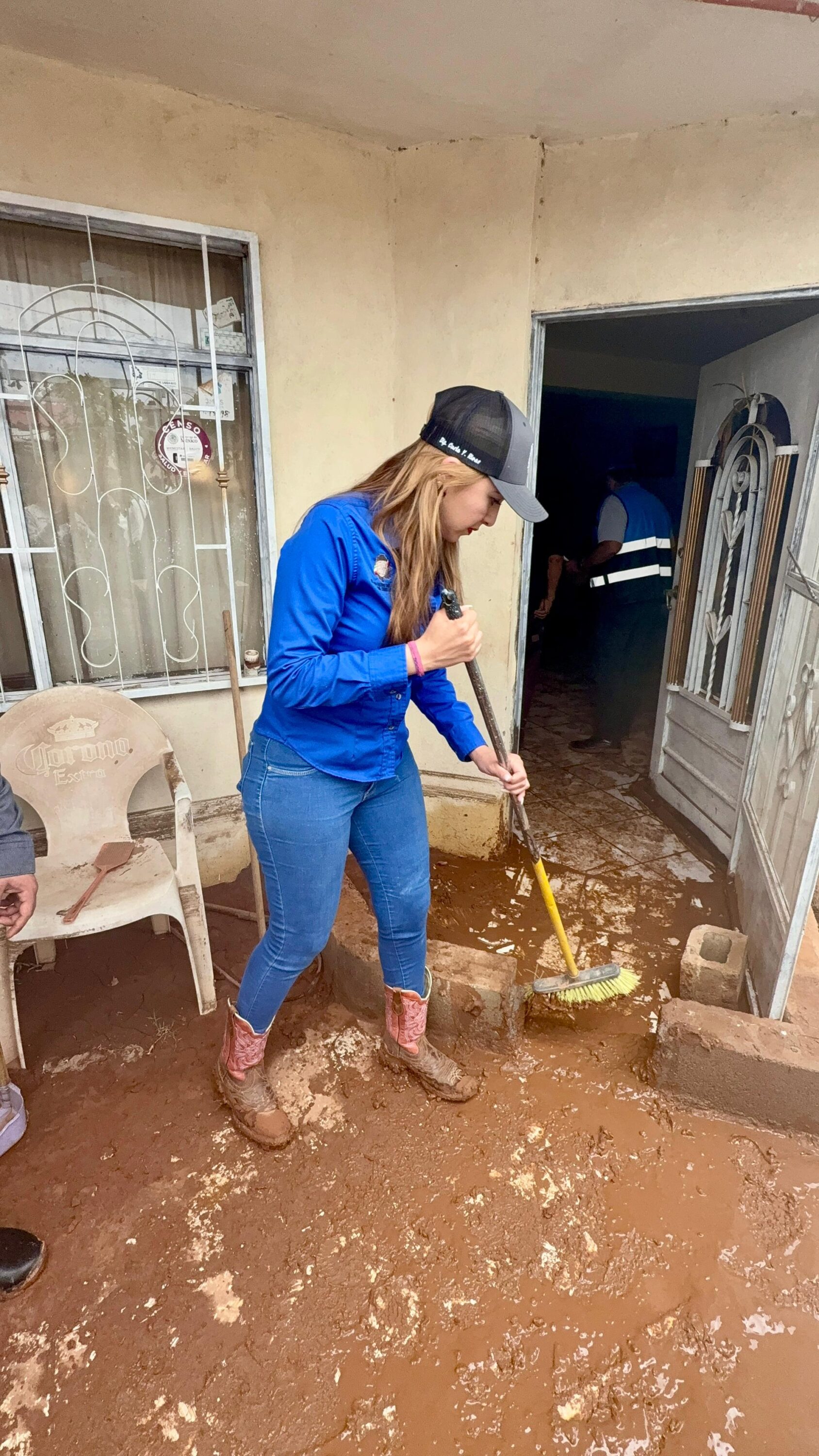 La diputada del PAN por el Distrito 16, Carla Rivas, encabezó los trabajos de atención en la colonia Valle Dorado, una de las zonas más golpeadas por las lluvias tras el desbordamiento del río El Bordo que provocó severas afectaciones a decenas de familias.