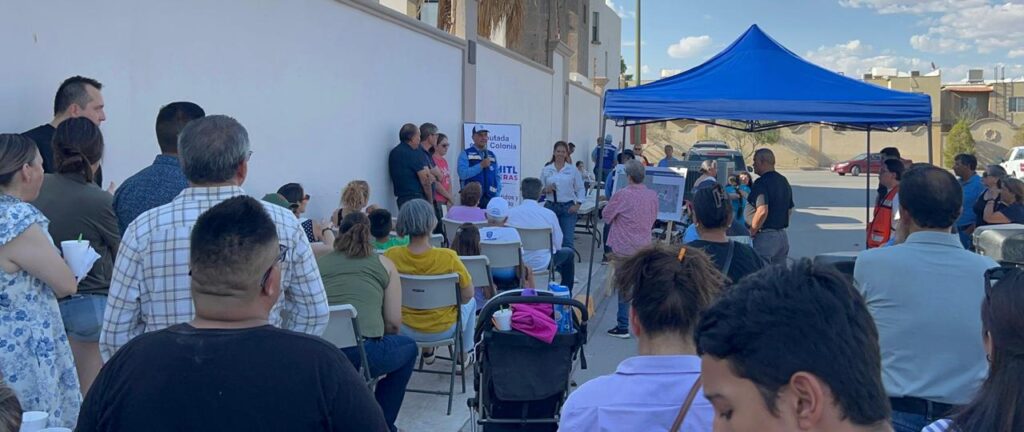 Ciudad Juárez, Chih.- En seguimiento a su compromiso con los habitantes del Quinto Distrito, la diputada Xóchitl Contreras sostuvo una reunión vecinal en el Fraccionamiento Gardeno para escuchar de primera mano las inquietudes relacionadas con el servicio y abastecimiento de agua.
