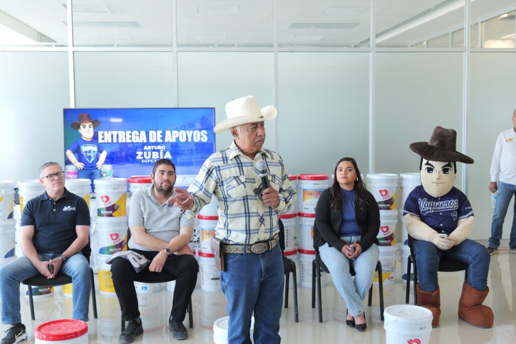 Camargo, Chih.- El diputado Arturo Zubía realizó una visita a la Universidad Tecnológica de Camargo (UTCAM), donde hizo entrega de impermeabilizante y pintura para mejorar las instalaciones y dar mantenimiento a toda la escuela, en beneficio de la comunidad estudiantil.