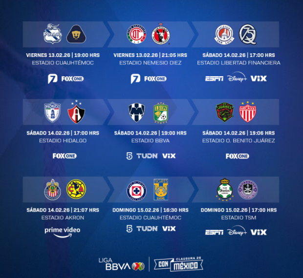 El viernes abrirá la actividad con Puebla ante Pumas a las 19:00 horas, en un duelo donde los locales intentan alejarse de la zona de multas por el descenso, mientras los universitarios llegan invictos pese a su reciente eliminación internacional. Más tarde, Toluca recibirá a Tijuana a las 21:05 horas, con los Diablos obligados a cortar su racha de empates y los Xolos defendiendo su condición de equipo sin derrotas.