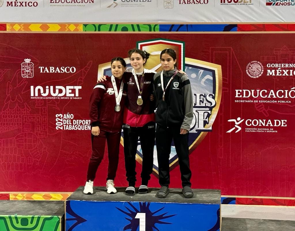 Fernanda González Rodríguez (Hasta 48kg), Jazmín Izamar López Molina y Victoria Belem Sauceda Soto,