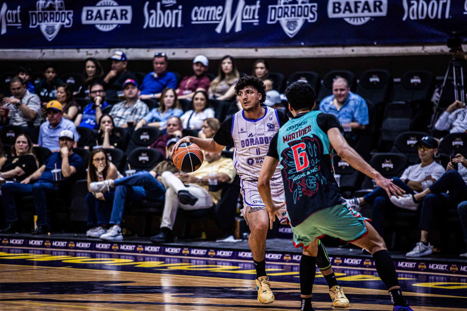 Previo al entretiempo, Raúl Delgado castigó en la larga distancia emparejando el tanteador 46-46 en un pletórico MBA. Dorados encestó cinco triples en la primera mitad, contra siete del cuadro aborigen.