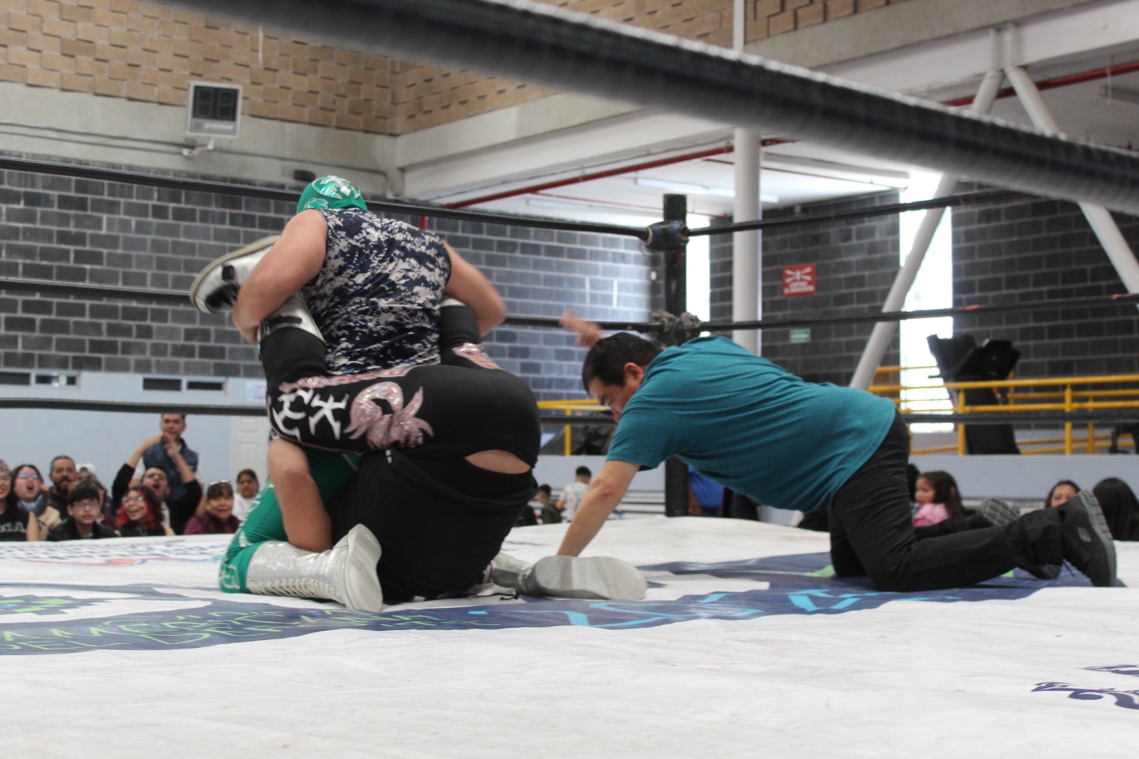 La cartelera incluyó una exhibición de alumnos de Lucha Libre CUU, así como diversos combates que mantuvieron un ambiente familiar y de entusiasmo durante toda la función.