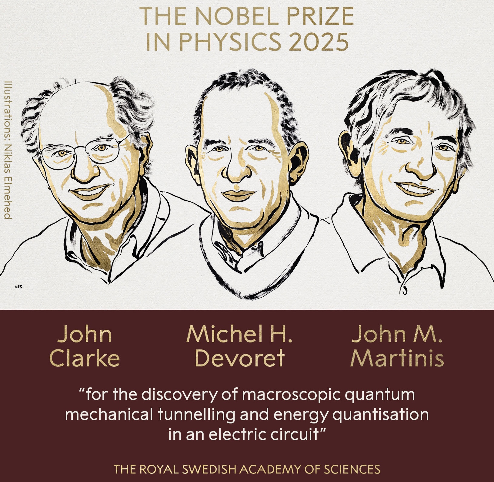 La Real Academia Sueca de Ciencias otorgó el Premio Nobel de Física 2025 a los investigadores John Clarke (Reino Unido), Michel H. Devoret (Francia) y John M. Martinis (Estados Unidos) por un logro que desafía los límites entre lo invisible y lo palpable: demostrar que los efectos cuánticos pueden manifestarse en sistemas macroscópicos.