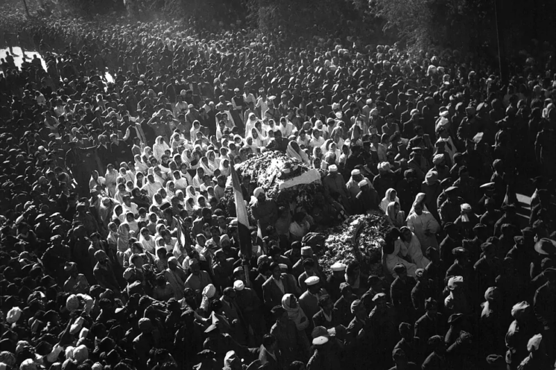 El funeral de Gandhi fue una manifestación sin precedentes de dolor colectivo. Más de dos millones de personas acompañaron la procesión fúnebre que recorrió las calles de Delhi. Sus cenizas fueron posteriormente esparcidas en varios ríos sagrados de la India, siguiendo la tradición hindú.