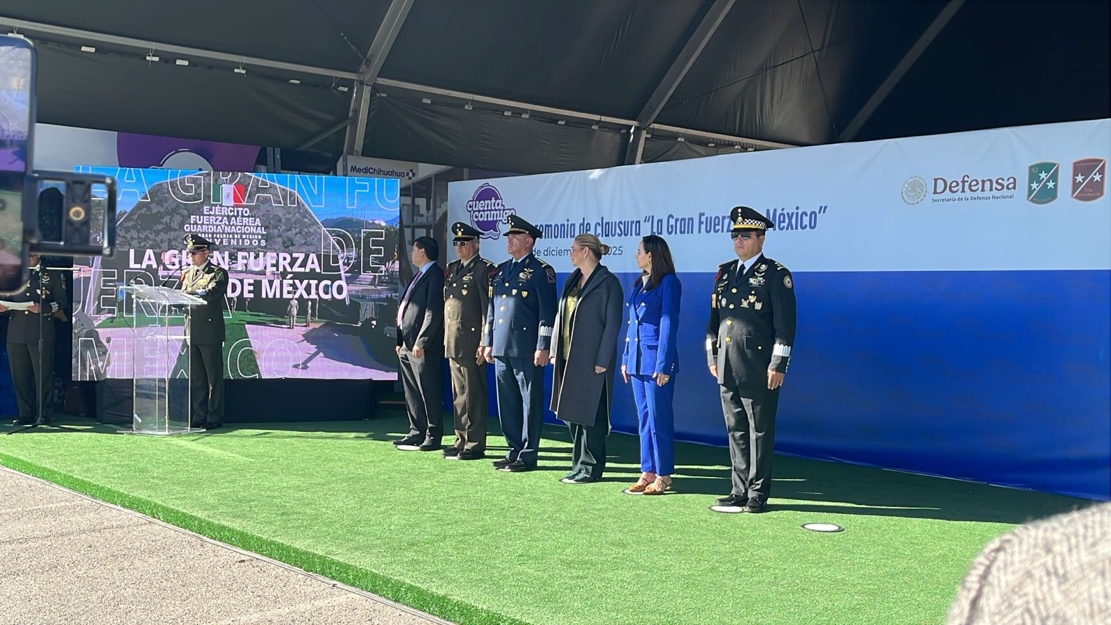 Noreste; el General de Brigada E.M. Alejandro Rivas Salgado, Coordinador Estatal de la Guardia Nacional; el Coronel de Infantería Carlos Fortunato Sánchez Cobos, Comandante del 23/o. Batallón de Infantería; la magistrada Marcela Herrera Sandoval, Presidenta del Tribunal Superior de Justicia del Estado de Chihuahua; el diputado Guillermo Patricio Ramírez Gutiérrez, Presidente del Honorable Congreso del Estado de Chihuahua; Francisco Hugo Gutiérrez Dávila, Secretario de Educación y Deporte del Estado de Chihuahua; así como el General de Brigada de Estado Mayor Felipe González Moreno.