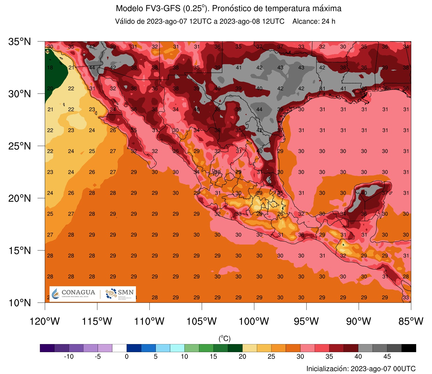 Durante este lunes 7 de agosto se espera un aumento de temperaturas en Juárez con 41 grados centígrados (°C), Ojinaga 43°C y Delicias 41°C, mientras que en la Ciudad de Chihuahua el termómetro llegará hasta los 38 °C y para la región serrana los valores irán desde los 27 hasta los 30 °C.