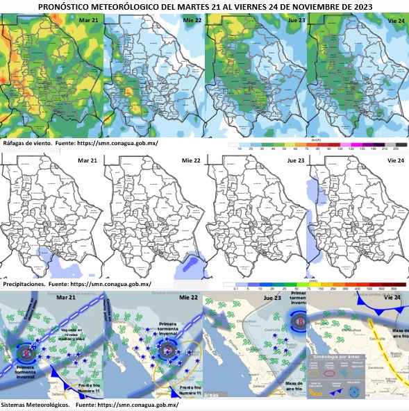 En municipios como Juárez, Guadalupe, Ascensión, Janos, Casas Grandes, Nuevo Casas Grandes, Temósachic, Matachí, Guerrero, Maguarichi, Urique, Guachochi, Balleza, Cuauhtémoc y Riva Palacio, las ráfagas podrían alcanzar los 55 km/h.
