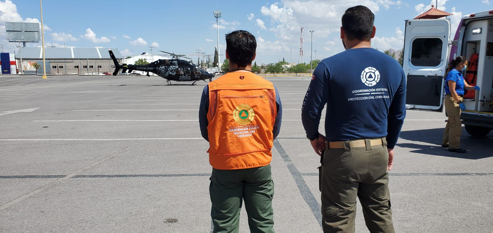 La aero-evacuación se realizó a bordo del helicóptero Bell 429 perteneciente a la SSPE, en coordinación con las autoridades aeroportuarias de Chihuahua y Ciudad Juárez.