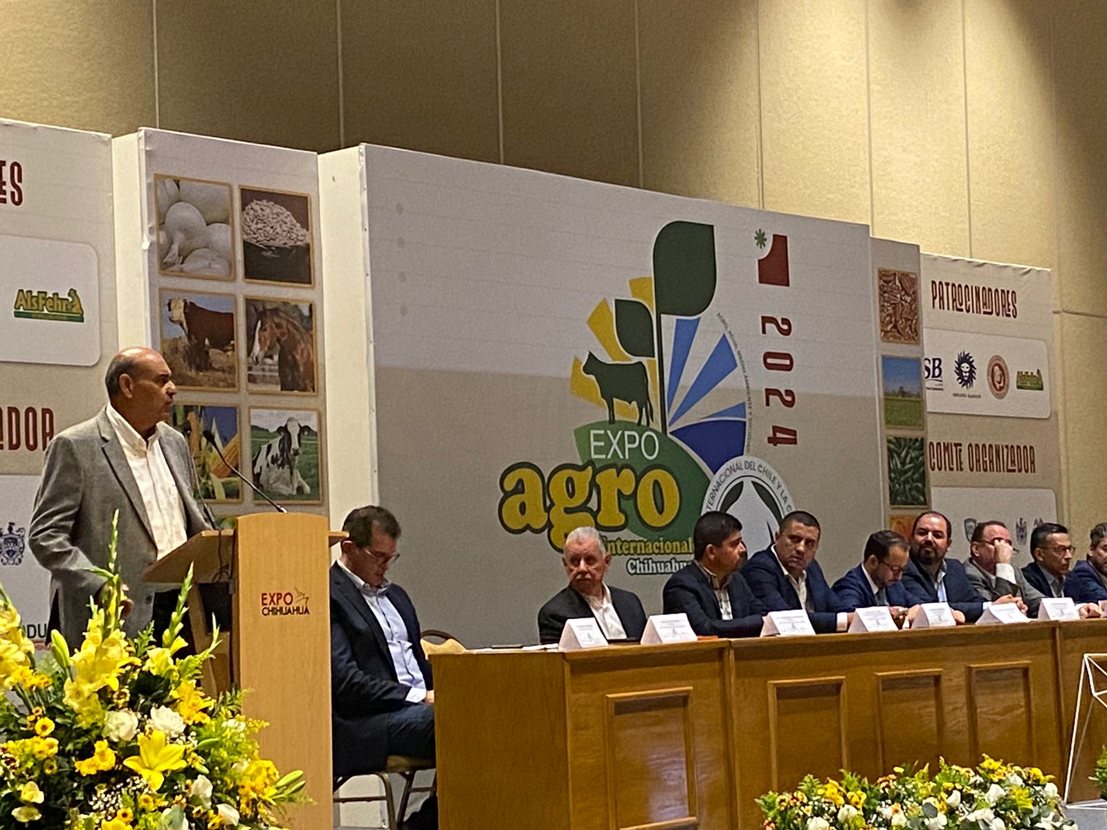 El presidente del Consejo Estatal Agropecuario de Chihuahua (CEACH), Arturo González Ruiz, y el secretario de Desarrollo Rural, Mauro Parada Muñoz, en representación de la gobernadora Maru Campos, inauguraron esta mañana Expo Agro 2024 en el centro de convenciones.