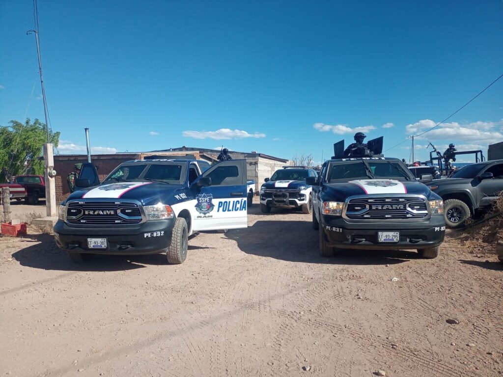 Elementos de la SSPE detuvieron a una persona, aseguraron tres vehículos con reporte de robo, drogas, armas, equipo táctico y dinero en efectivo.
