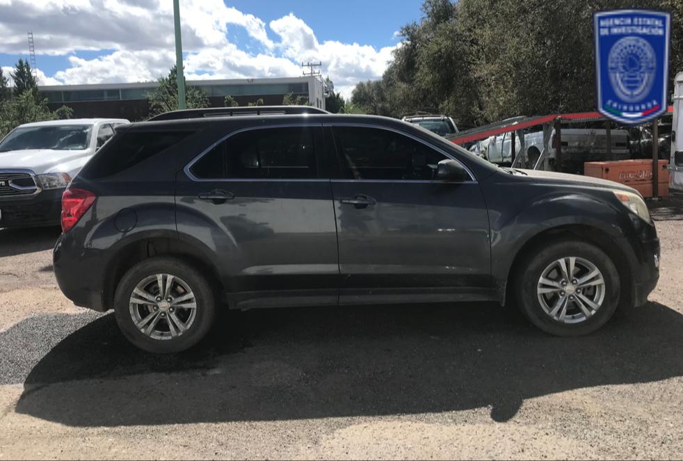 • Camioneta de la marca Chevrolet, línea Equinox, modelo 2010, color gris, con placas de circulación del estado de Chihuahua, con reporte de robo interpuesto el 17 de octubre de 2023, en la ciudad de Cuauhtémoc.