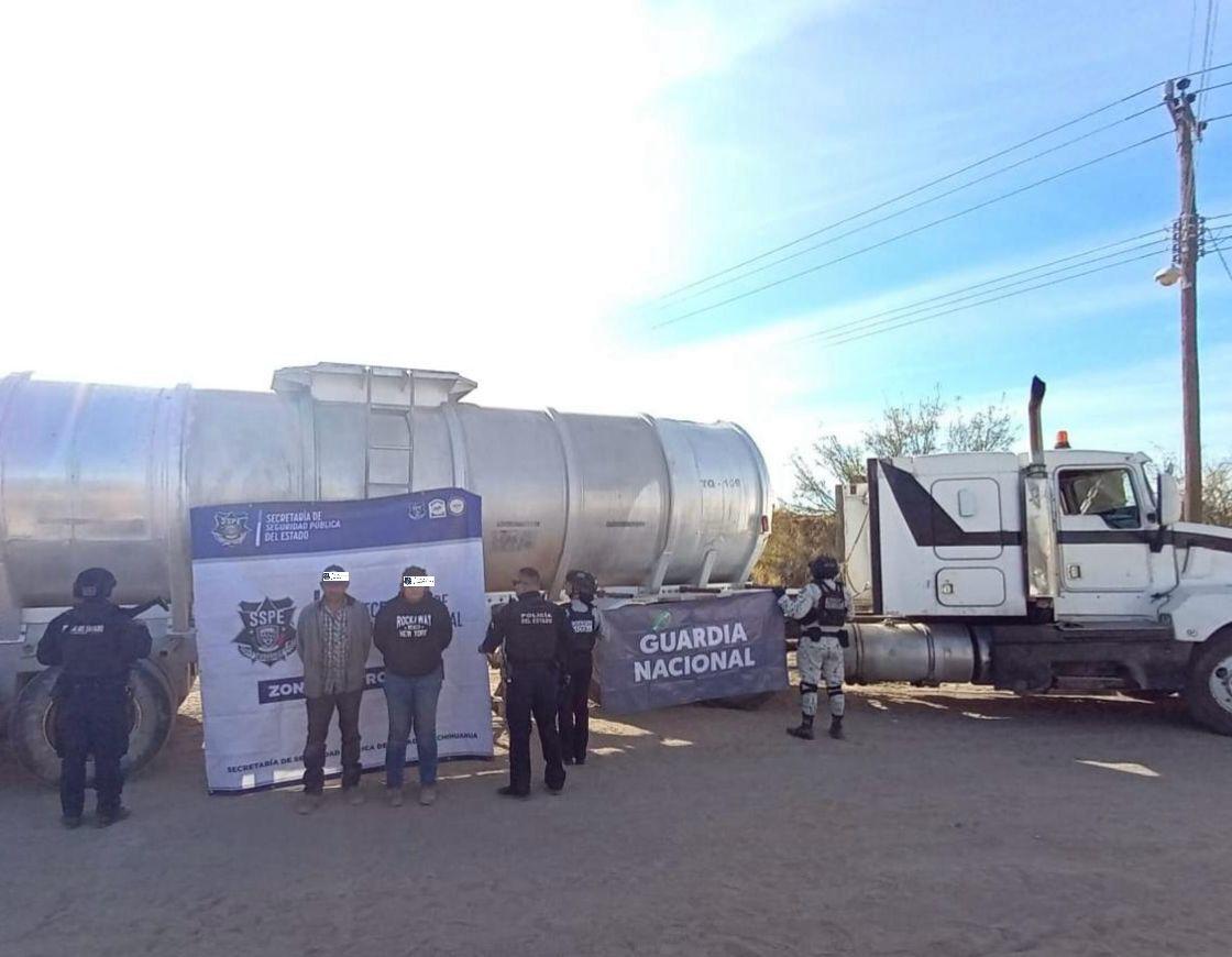 Ante esta situación, los elementos de la SSPE y de la Guardia Nacional iniciaron una persecución, logrando darle alcance en flagrancia. Al realizar la inspección correspondiente, se cuestionó a los tripulantes sobre la procedencia del hidrocarburo que transportaban; sin embargo, estos no pudieron acreditar su legal origen, ni proporcionar información que sustentara su traslado.