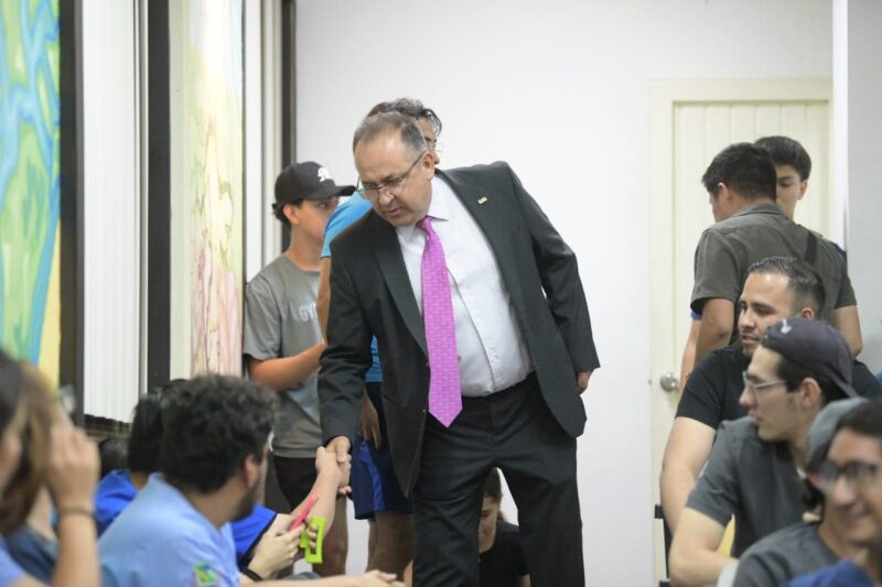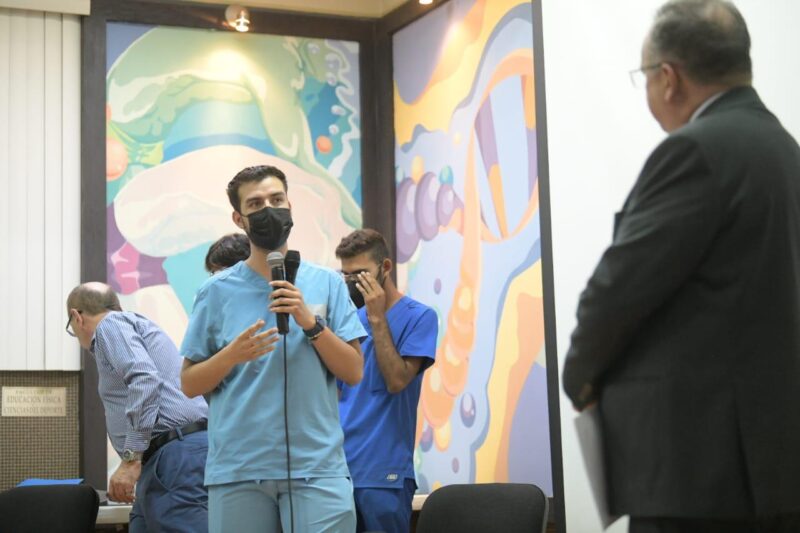 Durante el encuentro, el rector Rivera Campos se comprometió a escuchar las expresiones y peticiones de la comunidad estudiantil, iniciando este día con el personal docente y luego con las y los estudiantes de los primeros semestres que quieren tener clases teóricas.