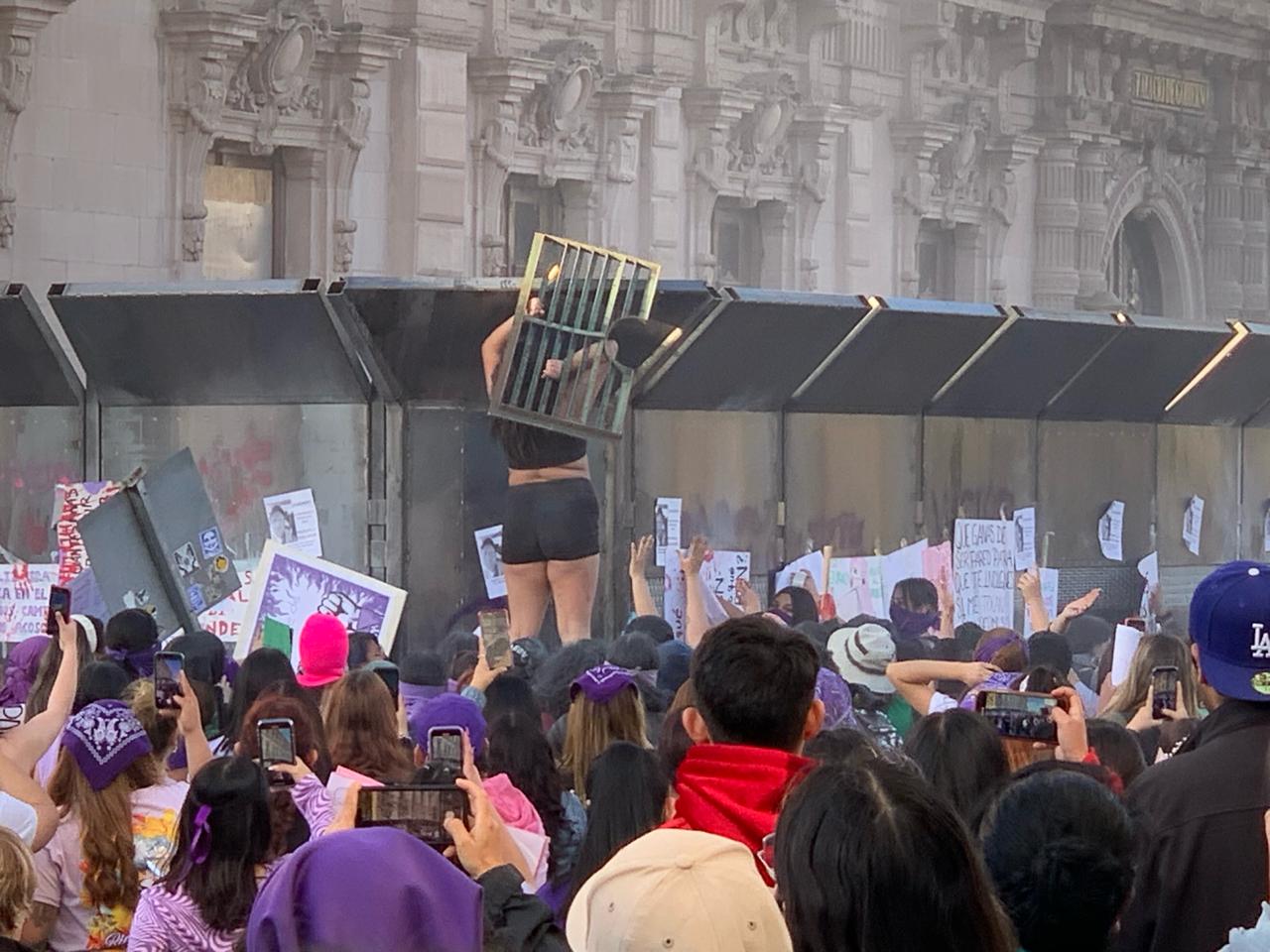 Un grupo de manifestantes lanzó pesadas piedras y rejas metálicas al interior de la muralla perimetral instalada en Palacio de Gobierno.