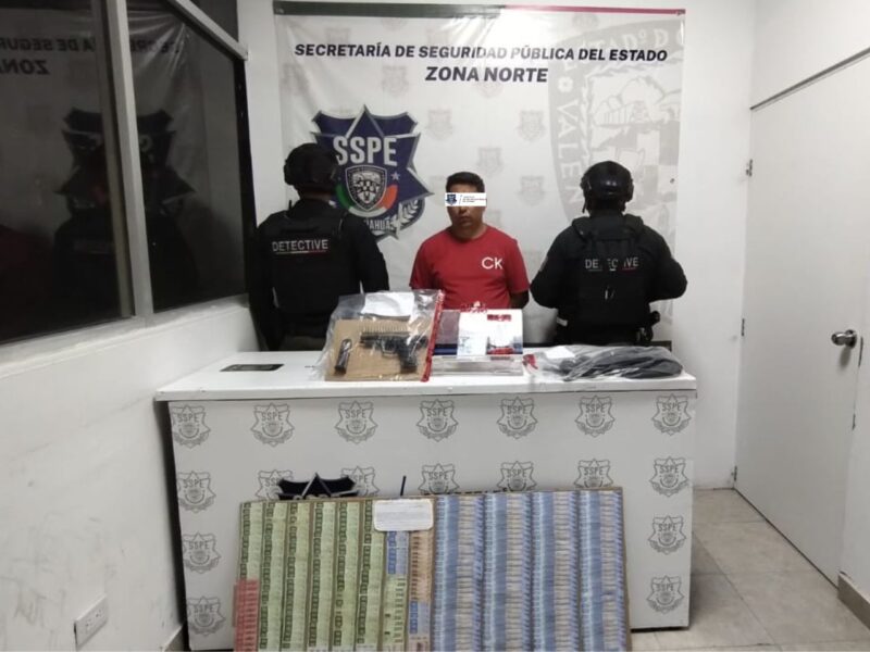 Tras las investigaciones, el hombre fue puesto bajo arresto por su posible participación en el robo, al asegurarle 137 mil 500 pesos en efectivo, además de cometer delitos contra la salud, por la portación de 2.2 gramos de una sustancia con las características de la cocaína.