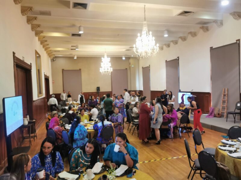 En el desayuno estuvieron presentes decenas de mujeres indígenas, mismas que compartieron los alimentos con autoridades de los distintos órdenes de gobierno.