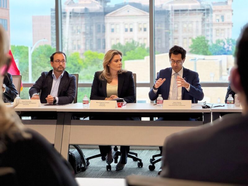 Como parte de la agenda, se reunió con integrantes de la Texas Association of Business (TAB, por sus siglas en inglés), con los que estableció acuerdos enfocados en la internacionalización de empresas chihuahuenses en Texas, el fomento a las inversiones en sectores estratégicos y el desarrollo de compañías en industrias de alto potencial.