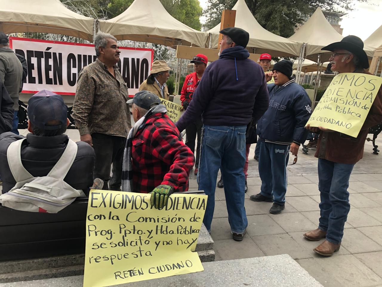 Decenas de integrantes del Retén Ciudadano se manifestaron este jueves frente al Congreso del Estado de Chihuahua, exigiendo una reunión con el diputado Jorge Soto, presidente de la Comisión de Programación, Presupuesto y Hacienda Pública, para abordar el tema de la revalidación y replaqueo vehicular.