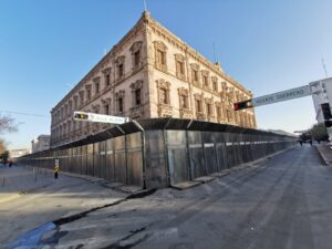 En el centro de la ciudad, se ha implementado un amplio dispositivo de seguridad con la colocación de muros metálicos alrededor del Palacio de Gobierno y de la Alcaldía. El perímetro de protección se extiende desde la calle Allende hasta la calle Niños Héroes y desde la calle 13 hasta la Ocampo. El Palacio de … Sigue leyendo Colocan vallas metálicas alrededor de Palacio de Gobierno