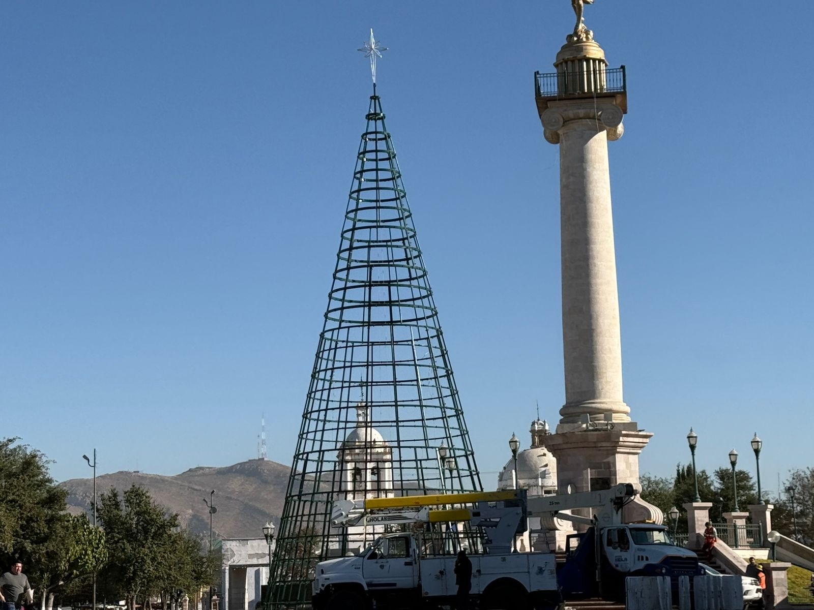 La instalación del tradicional árbol de Navidad en la Plaza del Ángel comenzó este jueves, marcando el inicio de los preparativos para las festividades decembrinas en la capital del estado.