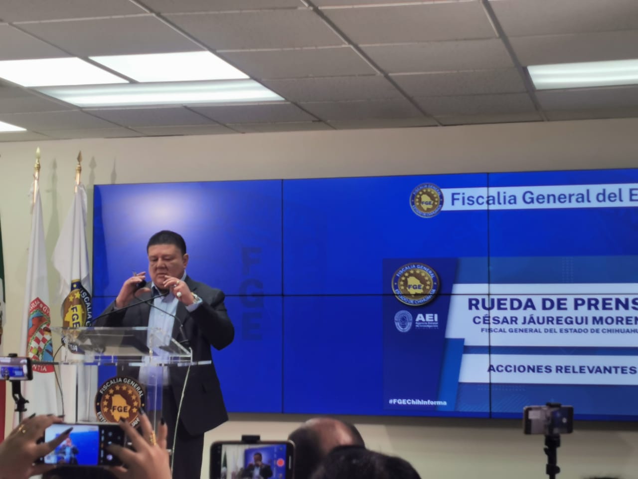 El Fiscal General del Estado, César Jáuregui Moreno, confirmó la aparición de una manta con un mensaje intimidatorio en ciudad Juárez. En una breve declaración, Jáuregui informó que en las primeras horas de la mañana se localizaron dos cuerpos sin vida con una manta con la leyenda: “Eso les pasa por traer gente indocumentada”, lo cual apunta a un conflicto entre grupos del crimen organizado.