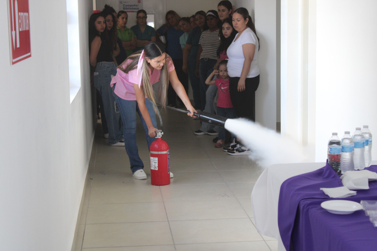 Entre otros temas, fue impartida la sesión del uso y manejo adecuado de distintos tipos de extintores, para saber cómo actuar en caso de emergencia con fuego, tanto dentro, como fuera de las instalaciones.