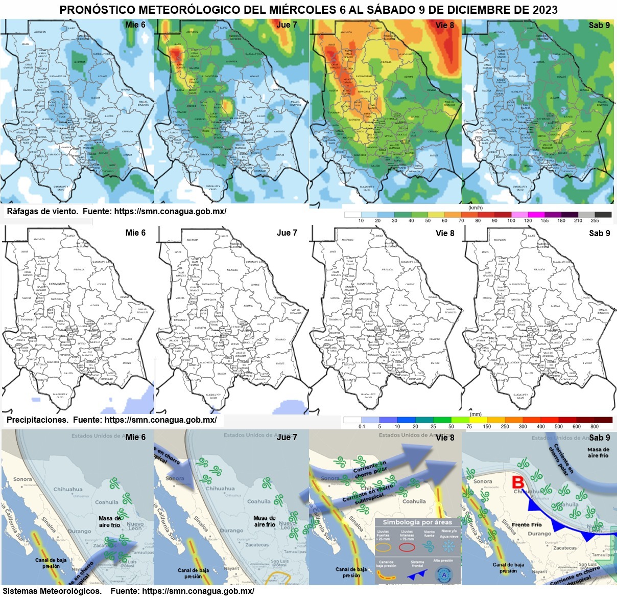 En cuanto a los vientos, estos irán de 5 a 20 kilómetros por hora (km/h), con ráfagas que pueden alcanzar los 35 km/h en Ahumada, Parral, Coronado, Allende, López y Jiménez.