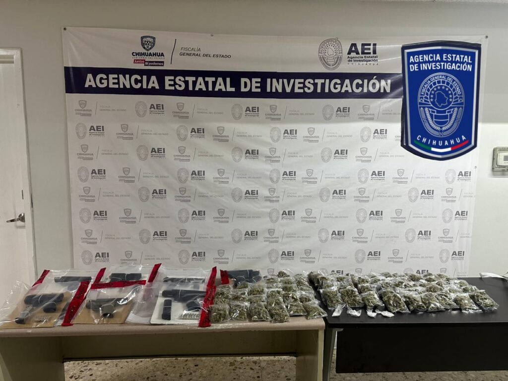 La Agencia Estatal de Investigación puso a disposición del Ministerio Público de la Fiscalía de Distrito Zona Centro, a dos sujetos que fueron sorprendidos en posesión de siete armas tipo pistola y 79 envoltorios con drogas.