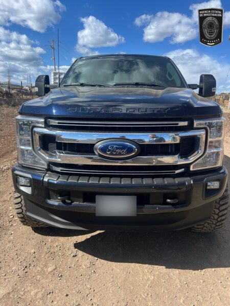 Tras marcarle el alto al conductor de la pick up de la marca Ford, Super Duty, modelo 2022, color azul marino, revisaron los números de serie y confirmaron que era robada, por lo que detuvieron a sus tripulantes, quienes se identificaron como Christian Francisco Z. E., Luis Antonio E. H., y Carlos Antonio V. R.