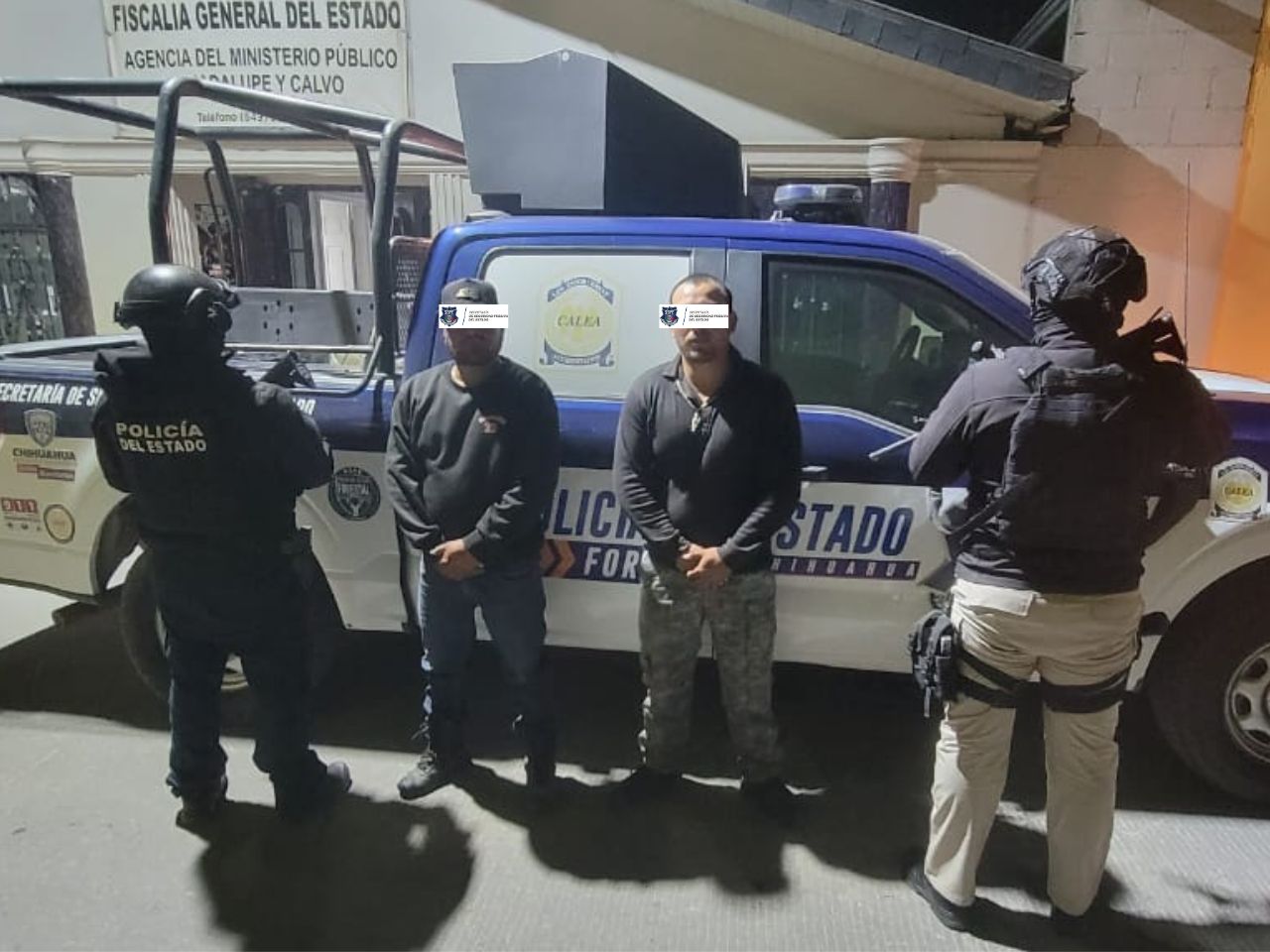 En un operativo realizado por elementos de la Secretaría de Seguridad Pública del Estado (SSPE) en el municipio de Guadalupe y Calvo, dos hombres fueron detenidos por portación ilegal de armas de fuego y presunta usurpación de funciones.