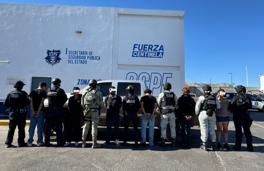Durante la intervención, los agentes aseguraron a cuatro hombres y dos mujeres, identificados como Jorge G. R. alias “El Lobo”, de 38 años; Luis Fernando V. M. alias “El Ferias”, de 16 años; Sergio Alberto O. C. alias “El Pollo”, de 22 años; David P. A. alias “El Güero”, de 16 años; Jocelyn L. M., de 17 años; y Ana F. T., de 23 años.