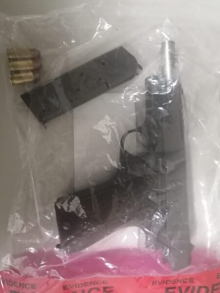 Los elementos de Estado Mayor, en conjunto con elementos de la Agencia Estatal de Investigación (AEI), de la Fiscalía General del Estado (FGE), aseguraron a los detenidos 4 envoltorios con narcóticos, así como un arma de fuego calibre 45, por lo que fueron puestos a disposición de la autoridad correspondiente.