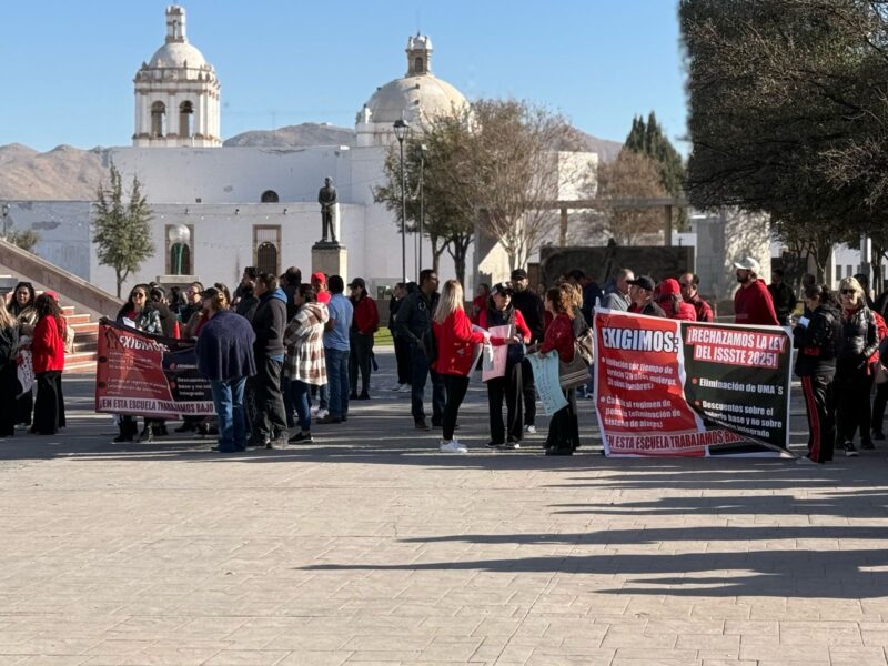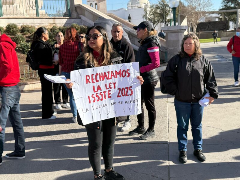 Chihuahua, 24 de febrero de 2025.- Por segundo día consecutivo, docentes del subsistema federalizado se manifestaron en rechazo a la reforma a la Ley del Instituto de Seguridad y Servicios Sociales de los Trabajadores del Estado (ISSSTE).