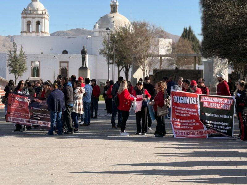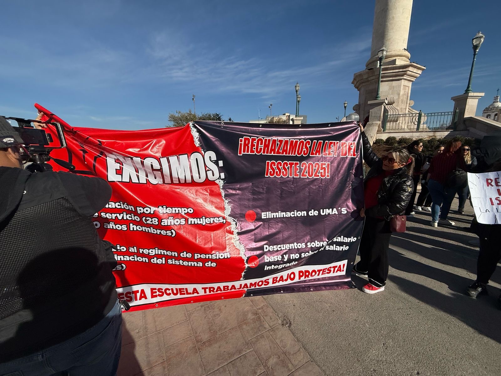 El movimiento se llevó a cabo en la Plaza del Ángel, donde maestros y maestras afiliados a la Sección 8 del Sindicato Nacional de los Trabajadores de la Educación (SNTE) realizaron una protesta pacífica para exigir cambios en la iniciativa.