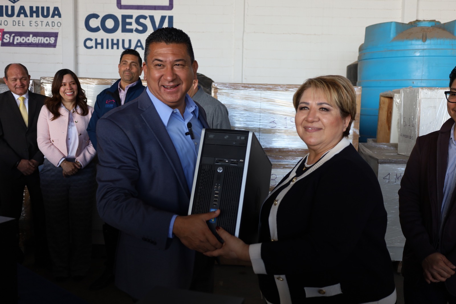 El funcionario explicó que el personal de Coesvi ya no empleará los equipos donados, por lo cual se optó por una reutilización responsable y solidaria, y tendrán una segunda vida al contribuir al aprendizaje y el desarrollo académico de la niñez chihuahuense.