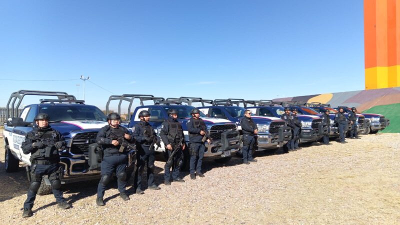 A la entrega de equipo y vehículos asistieron diversos alcaldes y alcaldesas, así como las titulares del Poder Legislativo y Judicial, Adriana Terrazas Porras y Myriam Hernández Acosta.