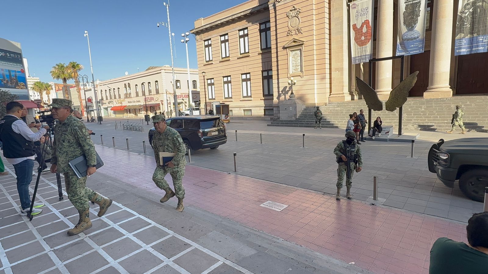 Chihuahua, Chih.– Este lunes 16 de junio, elementos de la Guardia Nacional, del Ejército Mexicano y de la Secretaría de la Defensa Nacional arribaron a Palacio de Gobierno para participar en la Mesa Estatal de Construcción de Paz, reunión de seguridad en la que autoridades de los tres niveles de gobierno revisan la situación delictiva de la entidad.