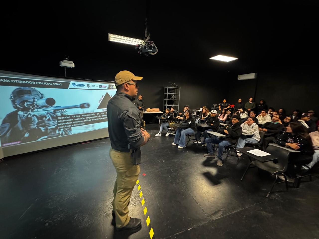 Asimismo, los estudiantes conocieron la oferta académica del Instituto Estatal de Seguridad Pública del Estado, donde se forman y capacitan los futuros elementos de la Policía del Estado. Durante la visita accedieron al aula táctica, donde presenciaron parte de las clases de formación policial y las capacitaciones que se imparten para la profesionalización y especialización constante del personal.
